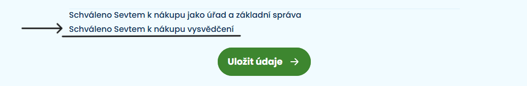 Pokud je zde uvedeno „Schváleno Sevtem k nákupu vysvědčení“, je nákup vysvědčení aktivní. Pokud tato role schválená není, kontaktujte kopecka@sevt.cz.