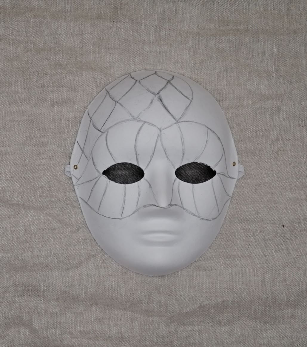 1. Tužkou nakreslíme konturu masky.