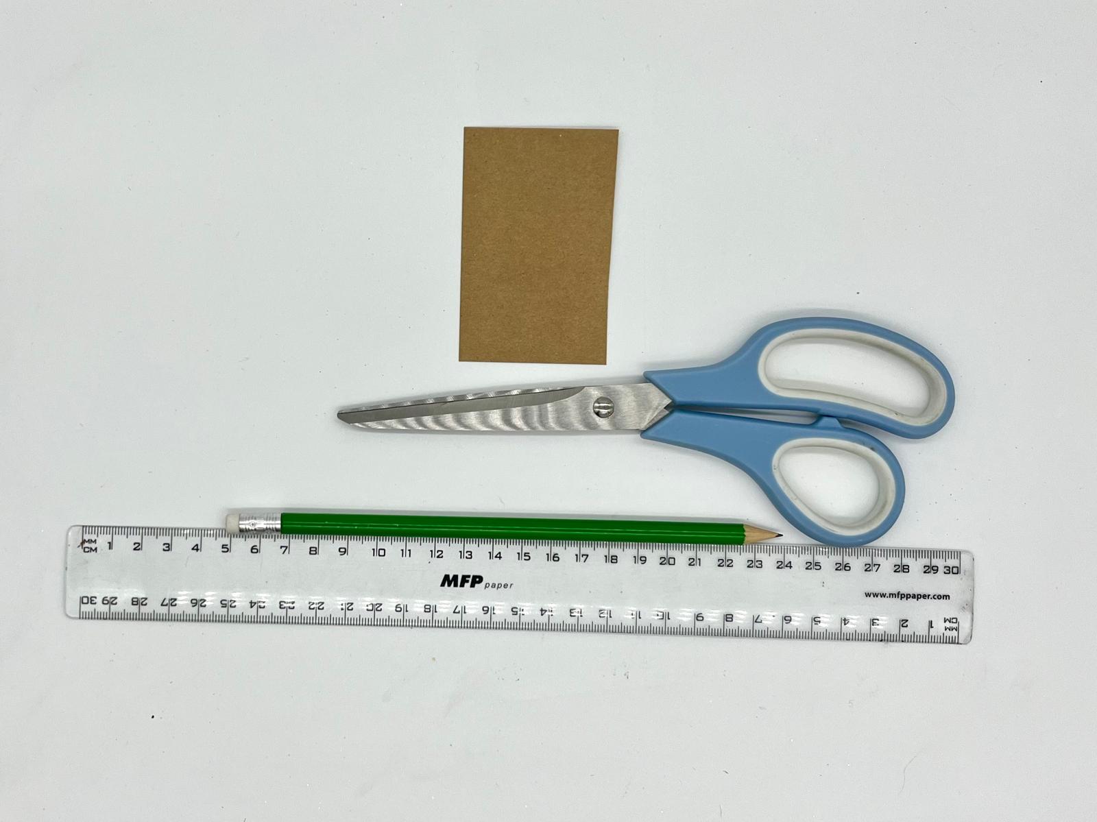 1. Z kraftového papíru vystřihneme obdélník o velikosti cca 8 x 5 cm.