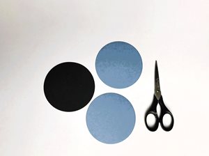 4. Z černého nebo tmavě modrého tvrdšího papíru vystřihneme kolečka o průměru cca 9 cm.