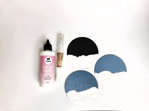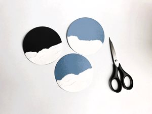 5. Ze zbytku bílého papíru natrháme „kopečky“. Nalepíme je přes sebe do spodní poloviny připravených koleček. U okrajů zastřihneme, abychom pořád měli krásné kolečko.