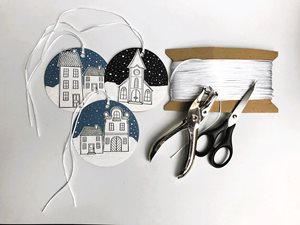 9. Nahoře na visačce uděláme dírku, provlečeme provázek a můžeme ihned použít na dáreček.