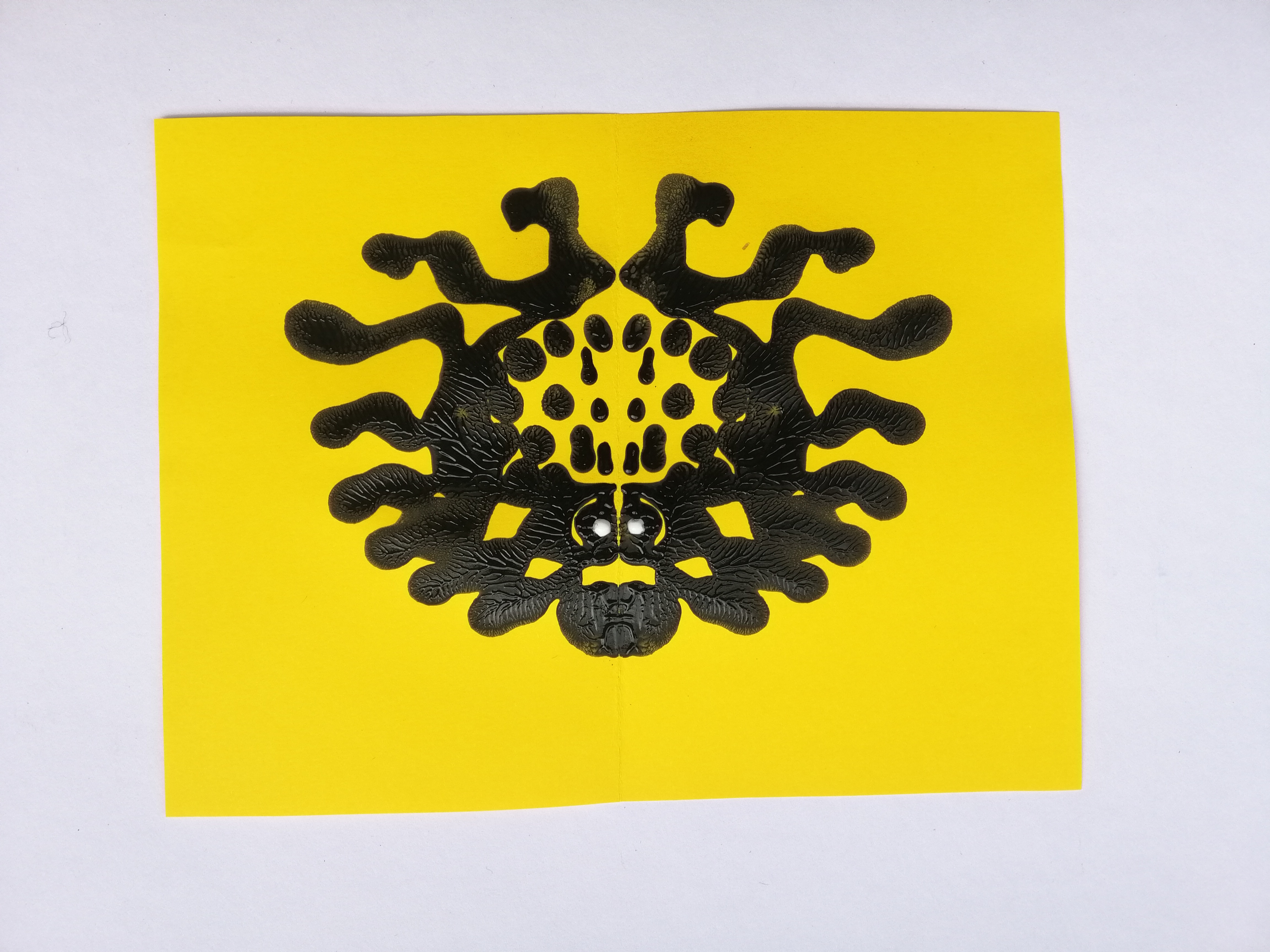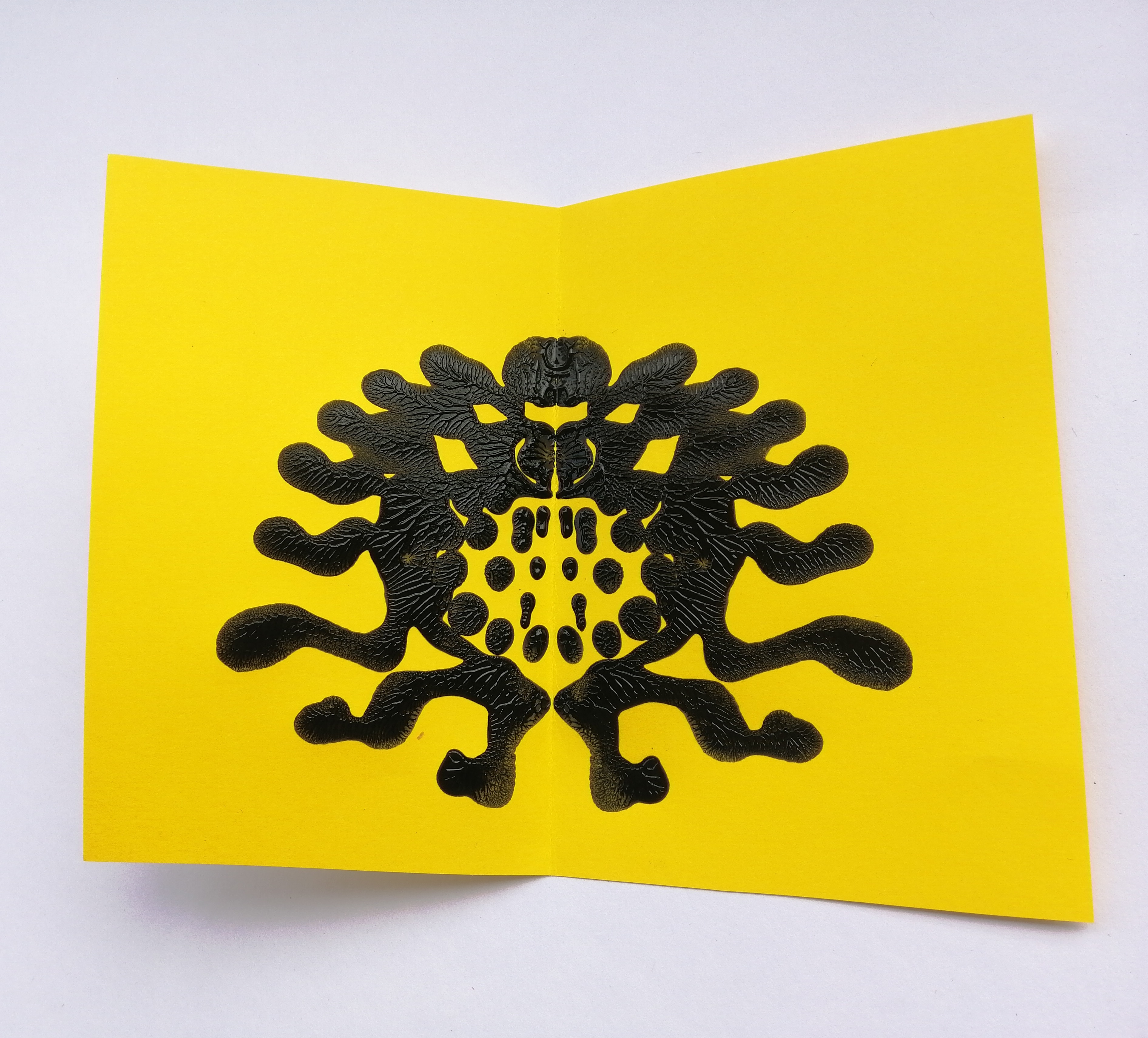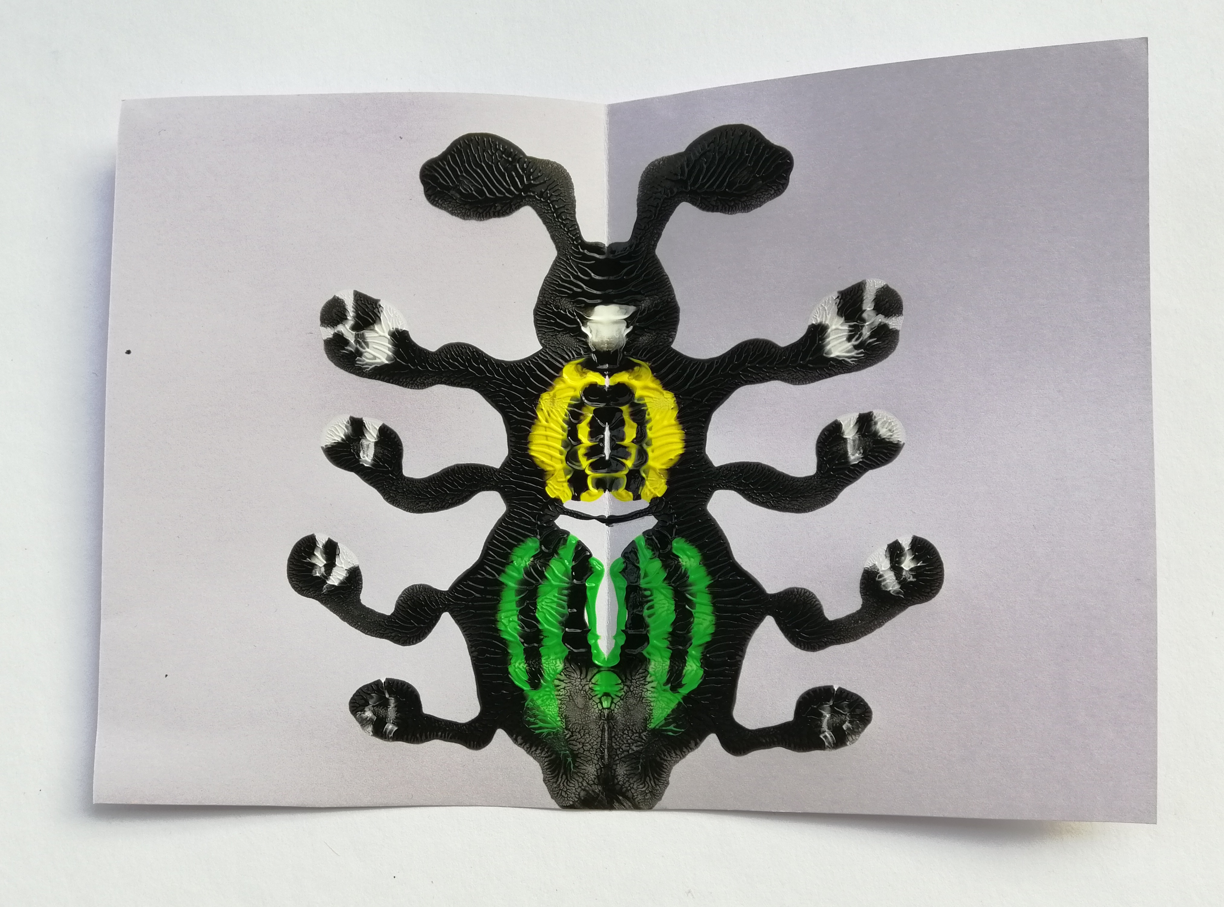 2. Karton opatrně přeložíme a celý ho uhladíme prsty. Poté arch otevřeme a necháme se překvapit, co nám vzniklo za zajímavé stvoření.