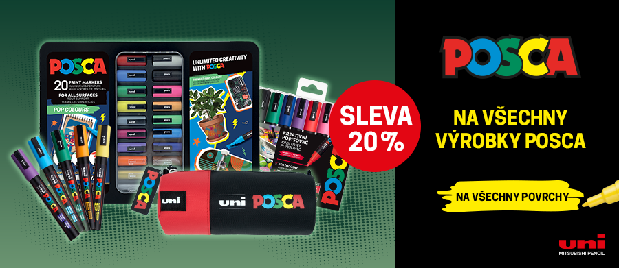 Dárek k nákupuSlevaAkrylové popisovače POSCA, PC-5M - 8 základních barev"Víceúčelový” člen řady POSCA je vhodný pro vybarvování i pro kreslení elegantních a přesných linií.649 Kč552 Kč-14%Na cestě, očekáváme 11. 12. 2025