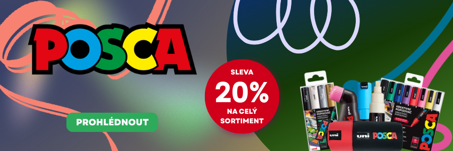 SlevaAkrylové popisovače POSCA, PC-3M, 0,9–1,3 mm - 8 třpytivých barevDekorační akrylový popisovač vhodný na různé povrchy.589 Kč471 Kč-20%Skladem 4 ks