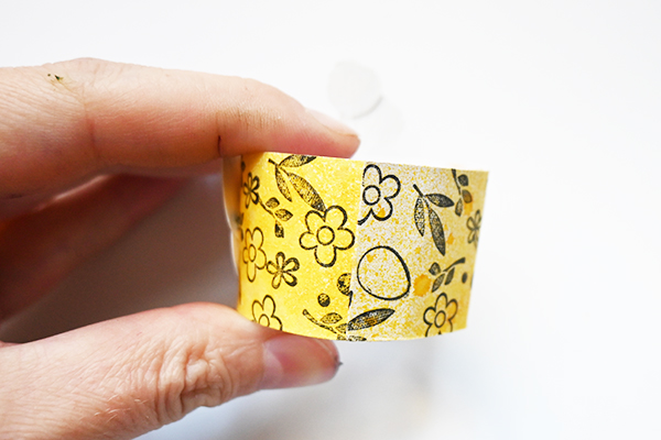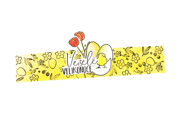 1. Z papíru ustřihněte proužek 16 x 3 cm. Nastříkejte žlutým akvarelovým sprejem.