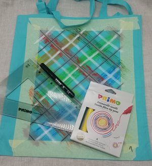 6. Pomocí pravítka a fixů na textil nakreslíme černé čáry přes šedé.