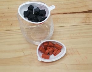1. Barevnou samotvrdnoucí hmotu nakrájíme nebo polámeme na malé kousky.