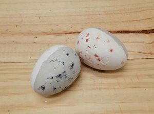 5. Po zatuhnutí sádry vajíčka vyndáme z formiček a opakujeme postup s nožem a brusným papírem.