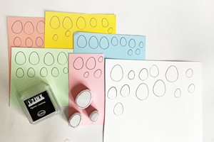 3. Na barevné papíry a bílou čtvrtku natiskneme různě velké motivy vajíček.