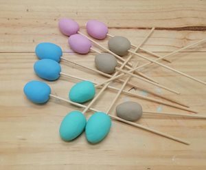 3. Opatrně nasadíme vajíčka na špejle a necháme uschnout.