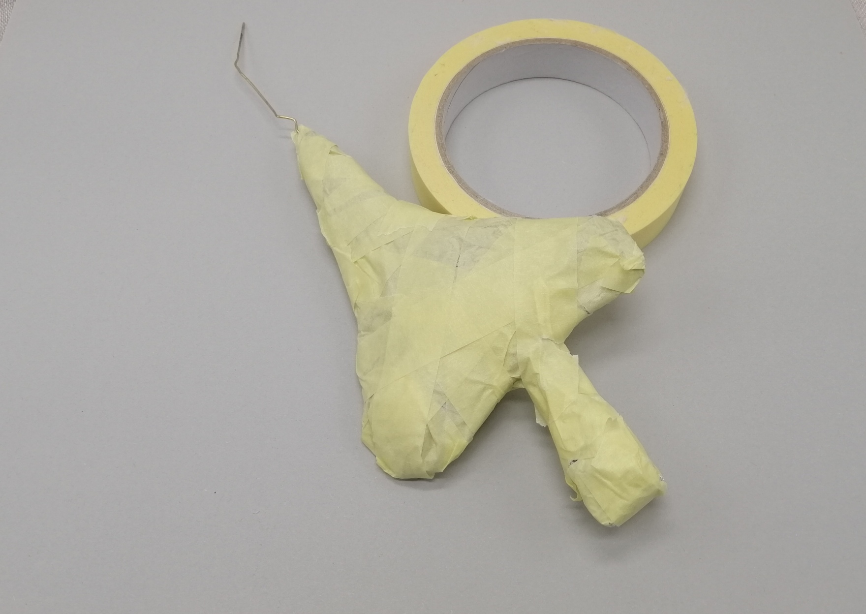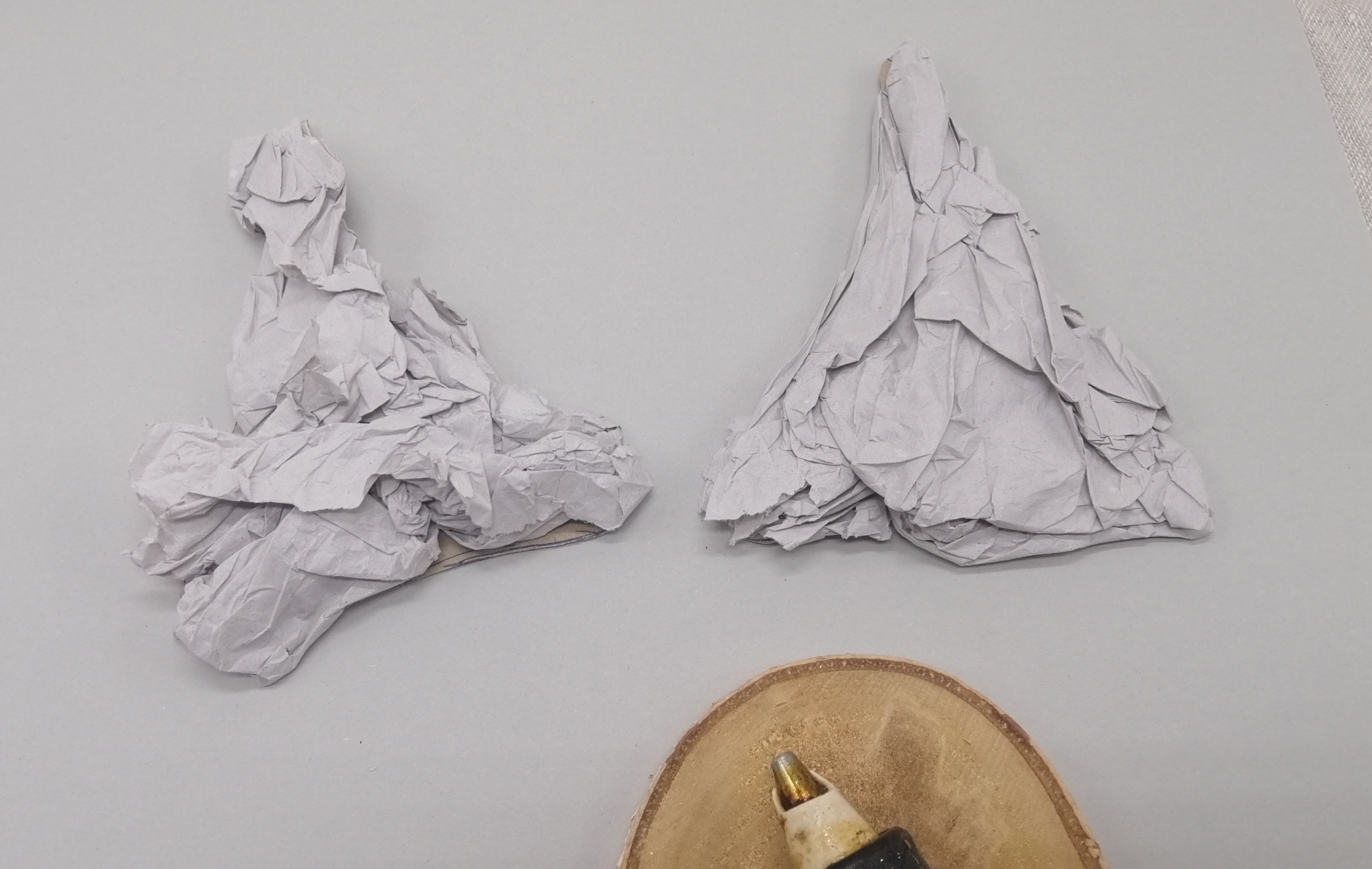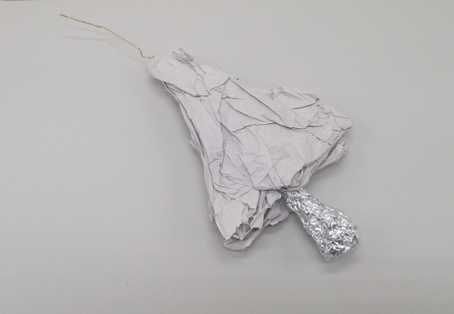 2. Balicí papír zmačkáme a nalepíme ho na klobouček pomocí tavné pistole.