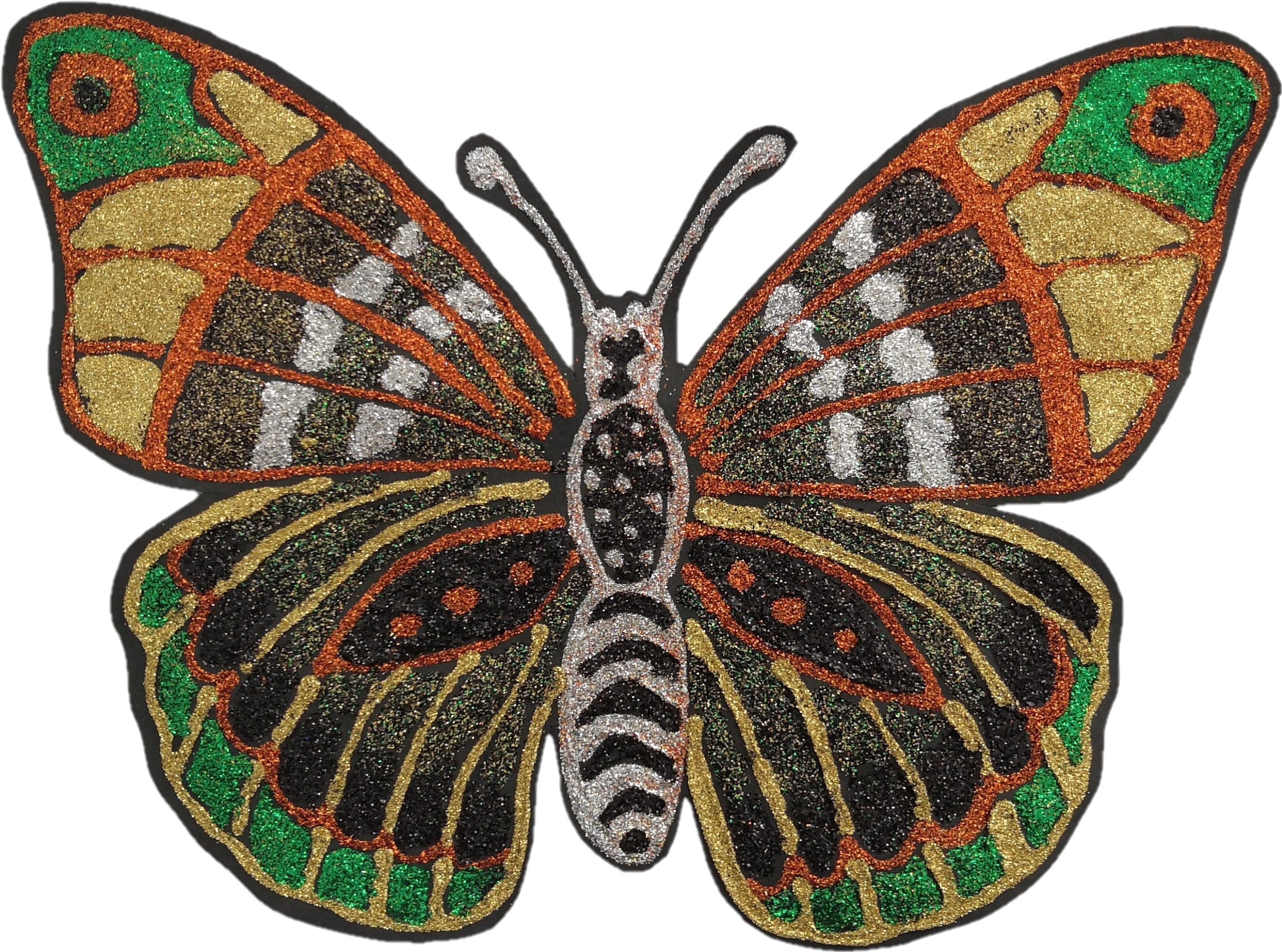 TIP: Kresba lepidlem a sypanými glitry. Stejným způsobem můžeme kreslit obrázky a načerstvě nanesené lepidlo nanášet sypané glitry nebo barevné písky. Při práci s víc než jdenou barvou glitru nebo písku obrázek vybarvujeme a následně zasypáváme glitry postupně.